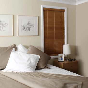 Timber Venetian blinds capture nature’s beauty and enhance a room’s coziest qualities while giving windows “center-stage” status. The natural insulating qualities of wood help keep rooms warmer in winter and cooler in summer. Available in white and stained colours.